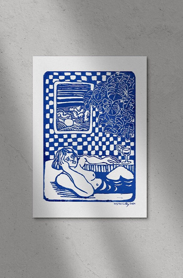 Diesen Linoldruck habe ich selbst kreiert und auf DIN A3 Papier (ca. 200g) gedruckt. Alle Drucke sind auf 100 Stück begrenzt und haben eine individuelle Nummer.