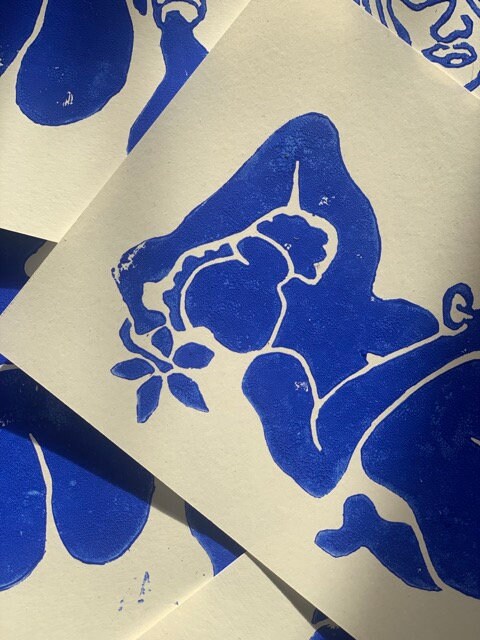 Diesen Linoldruck habe ich selbst kreiert und auf DIN A5 Papier (ca. 200g) gedruckt. Alle Drucke sind auf 100 Stück begrenzt und haben eine individuelle Nummer.