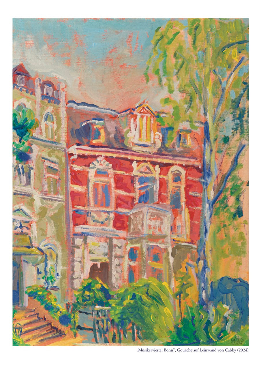 Dieses Bild habe ich im originalen mit Gouache auf Leinwand gemalt und dann digitalisiert und als Kunstdruck mit Schrift gelayoutet und auf ca. 170g Papier gedruckt.