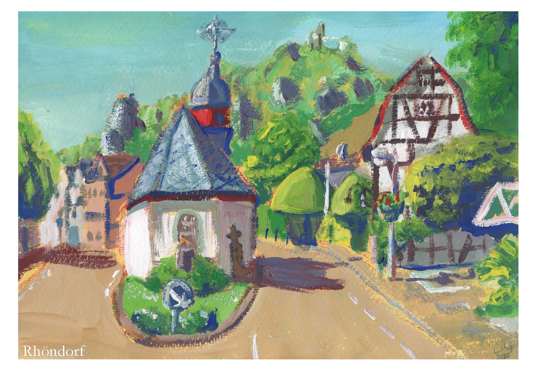 Rhöndorf Kapelle mit Drachenfels Kunstdruck