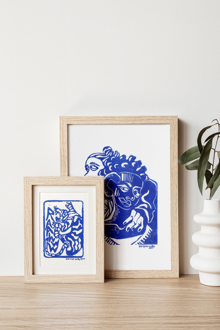 Diesen Linoldruck habe ich selbst kreiert und auf DIN A5 Papier (ca. 200g) gedruckt. Alle Drucke sind auf 100 Stück begrenzt und haben eine individuelle Nummer.